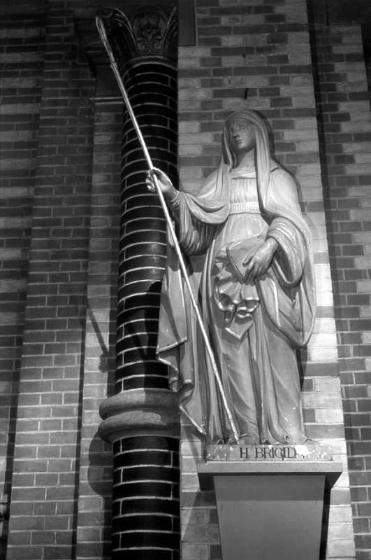 De heilige is St. Brigida van Kildare, de patrones van Ierland.