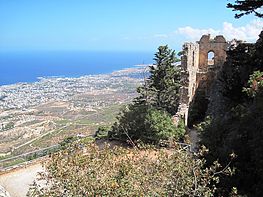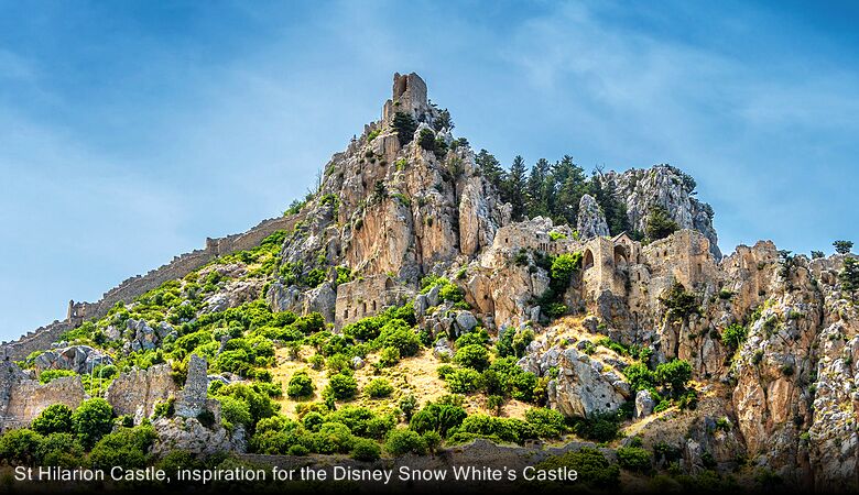 Het Kasteel van Saint Hilarion ligt op de weg van Nicosia naar Kyrenia. Het ligt in het Kyreniagebergte, op het noordelijk deel van Cyprus. De weg naar het kasteel voert door een militair gebied van de Turken, en je mag dan ook niet eerder op deze weg stoppen dan dat je bij het kasteel bent. Het ligt 730 meter boven de zeespiegel en was oorspronkelijk een klooster, genoemd naar Sint Hilarion, die deze strategische plek koos voor zijn hermitage in de 10e eeuw, want door de hoge ligging was het goed te verdedigen tegen de vele Arabische piraten. De muren en torens van het kasteel lijken vrijwel willekeurig uit de rotsen te verrijzen, waardoor het voor sommige iets sprookjesachtig heeft, waardoor het Walt Disney heeft geïnspireerd toen hij een kasteel voor Sneeuwwitje en de zeven dwergen liet bouwen.