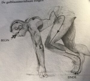 - Bestudeer de loop van de Meridiaan (foto’s uit boek: Donna Eden ‘Werken met energetische geneeskunde’)