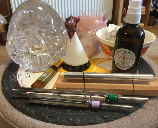 Alle producten in mijn Webshop zijn gecodeerd met Gouden Frequenties en verlaten bezield en specifiek geïnitieerd voor de besteller, mijn Sterrenpoort praktijk in Oegstgeest. Kristallen Schedels worden ook bij de Hoeder thuis rechtstreeks vanuit de LeMUria MoederBron ingestraald. Soms ga ik op reis, waardoor ik een bestelling ná thuiskomst zal verzenden. Tijdens afwezigheid breng ik de besteller via een mailtje hiervan op de hoogte. Niets in mijn Webshop komt i.p.v. een bezoek aan arts of specialist.