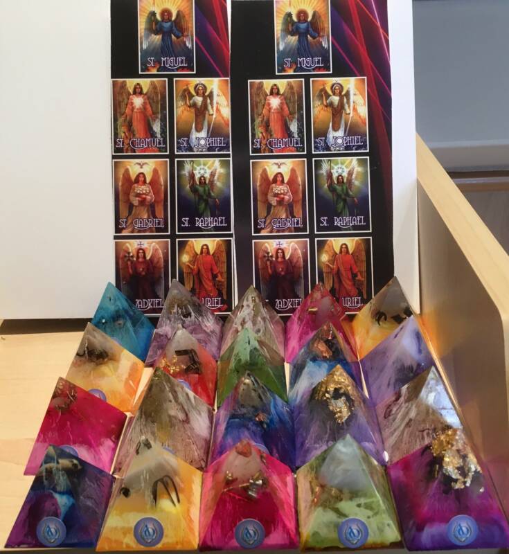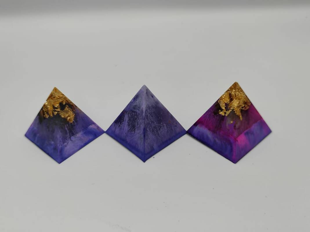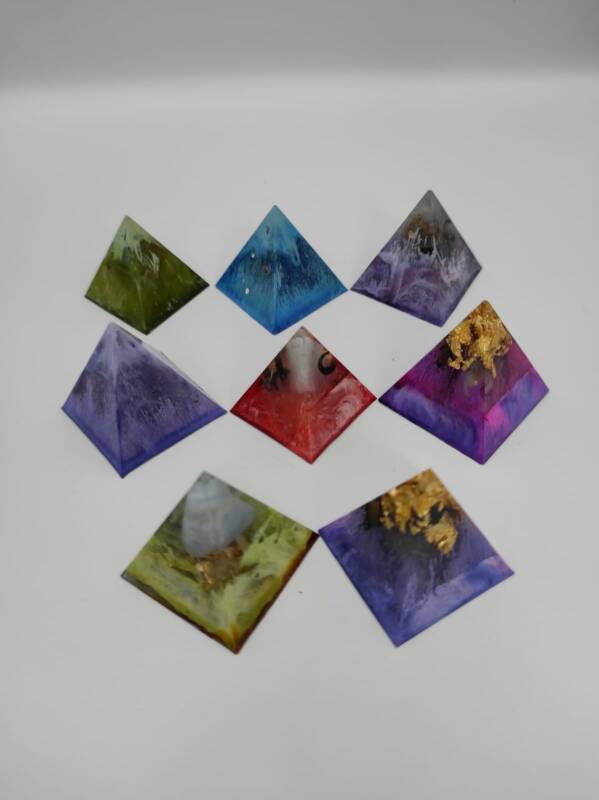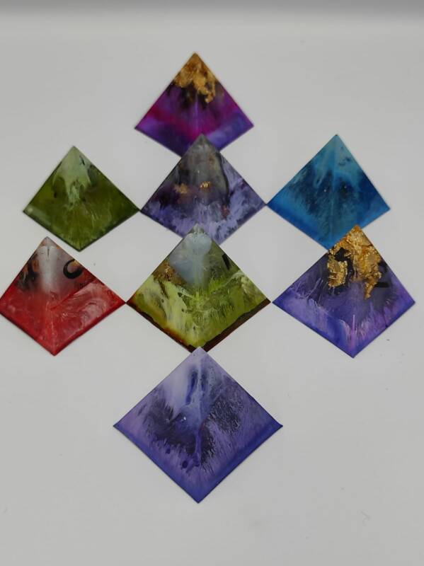 Zoals je kunt zien op de foto’s, zijn er diverse gemengde kleurige Solfeggio Piramides tot stand gebracht. Zij hebben allen een Grondende, Beschermende alsook een Bezielende functie.