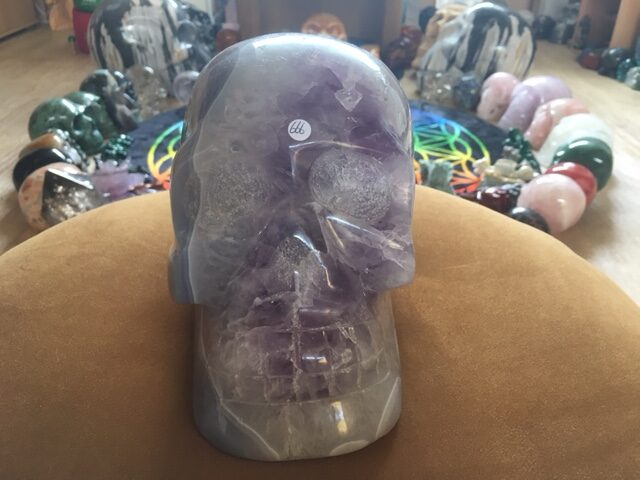 Zoals hier boven vermeld staat is deze kanjer van een skull van 4,5 kg een geduchte vrouwelijke skull in mijn Collectie Gewijde LeMUria skulls, want Merlijn – Merlina weet dat zij via deze skull werkelijk jouw basischakra zal aanpakken op een zachtaardige voortreffelijke wijze. Waarom dan geducht? Omdat zij, waar jij je ook bevindt, op afstand zal volgen, waardoor je overal beschermd, én geïnitieerd zal worden met haar Tovenaarsbloed ?.