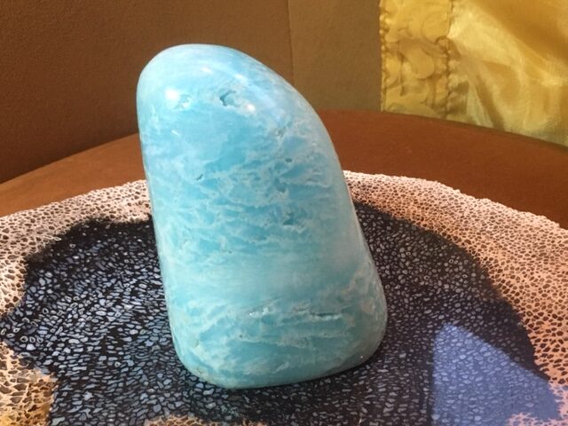Blauw Aragoniet ontstrest, kalmeert en geeft rustig en harmonie.
