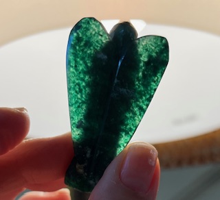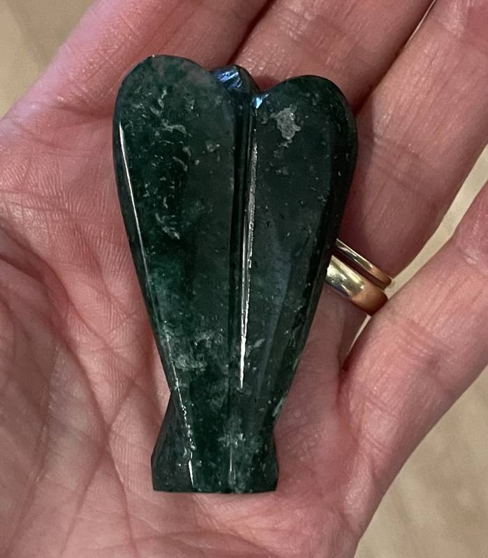 Met behulp van haar heldere Gouden LeMUria trilling zal deze groene aventurijn Engel ( bronsiet-achtig) jou voortdurend bijstaan met haar Engelengeduld. Zij wordt hierbij geleid vanuit de LeMUria Elfjes Moederbronnen.