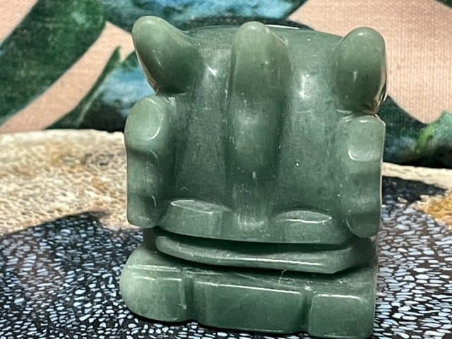 Groen Aventurijn werkt kalmerend, beschermend en bevordert een gevoel van welzijn. Zij trekt alsmaar meer voorspoed en geluk aan en motiveert je om je dromen waar te maken. Zij stimuleert tolerantie, geduld, enthousiasme, inlevingsvermogen, individualiteit en het bedenken van ideeën. Zij werkt ontspannend en kalmerend bij woede, ergernis en irritaties.