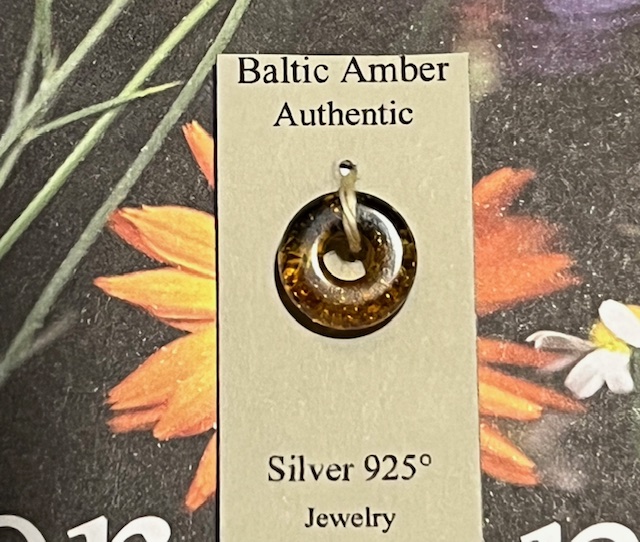 Op het kaartje staat dat het een zilver sieraad is, maar dit is dus NIET het geval! Het bestaat enkel uit Barnsteen, in Estland Amber genoemd.