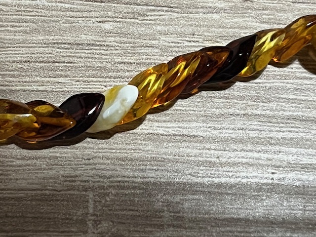 Alle Brons Gouden Barnsteen kleuren verenigd in één stralende ketting zal U niet snel ergens anders in een winkel vinden met deze Heldere kwaliteit. Ze is heel subtiel geregen en heeft zelfs een Barnsteen draaisluiting. (zie afbeelding)