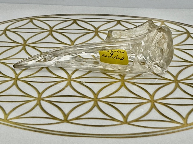 De kracht van een op LeMUriaanse wijze Ingewijde Raaf / Raven schedel staat voor Eenheid, Transformatie & Vernieuwing.