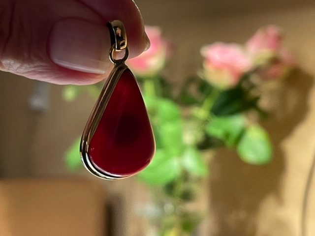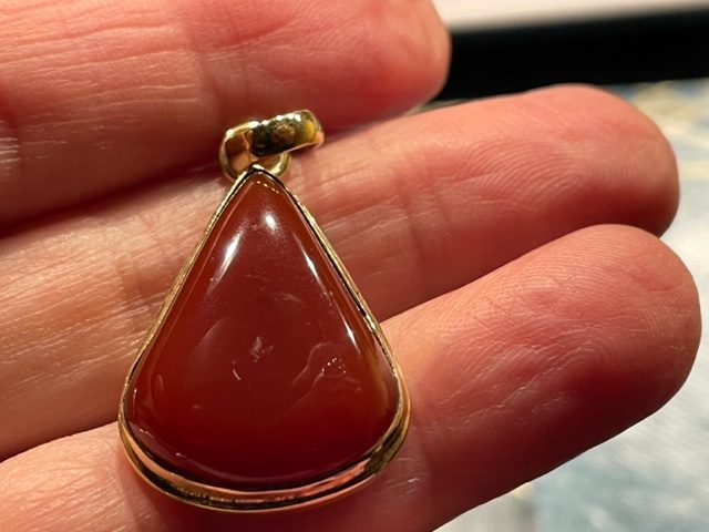 CARNEOOL HANGER 1 (Uruguay) – met Gouden opleg: Ingewijd als LEMURIA MARIA MAGDALENA hanger
