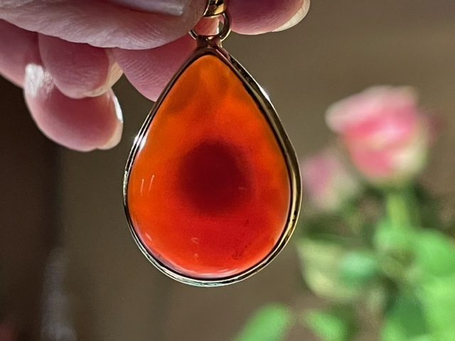 Carneool biedt een diepe gronding, stilt emoties en geeft bescherming. Ala pijnstiller werd het vroeger al ingezet tegen kiespijn en zenuwaandoeningen, bloedingen, koorts, verdriet toorn, maar tevens als GELUKSBRENGER!