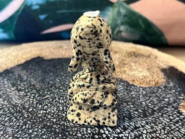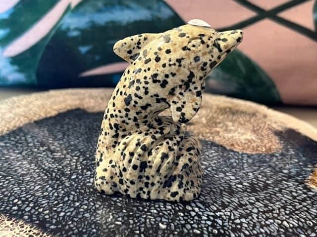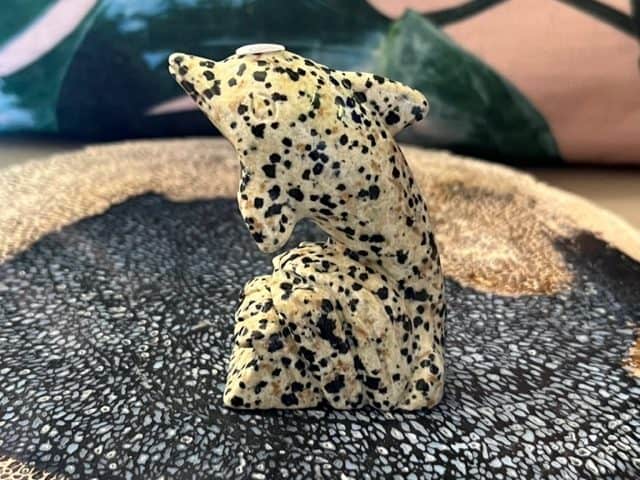 Dalmatiër jaspis werkt opbeurend en geeft energie. Hierdoor kan het depressie verminderen en nachtmerries verminderen. Fysiek heeft het een positieve werking op het kraakbeen, de zenuwen, verstuikingen en reflexen.