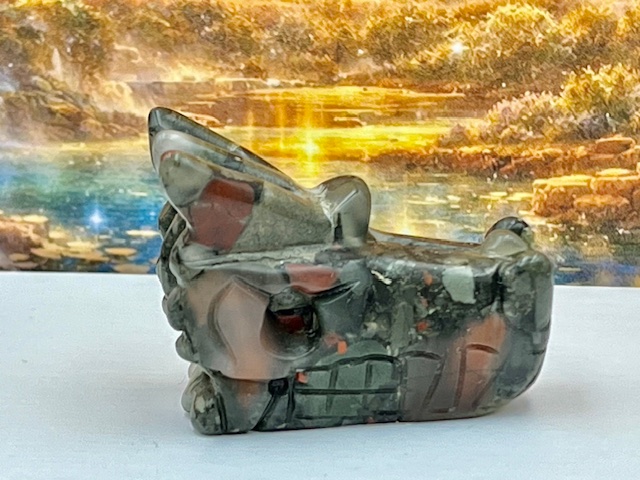Drakenbloed Jaspis, Drakenbloedsteen, Dragonstone of  Bastiet draagt de helende kundalini kracht en LeMUria wijsheid in zich van de alom vertegenwoordigde drakenwereld en activeert deze als een Medical Medium! Bij iedere Healer zou een Drakenbloed Jaspis Draakje in de Healing ruimte aanwezig dienen zijn, want zij bouwt een groot beschermend Diamantine krachtveld op om de Healer nog beter in haar/zijn kracht te zetten!