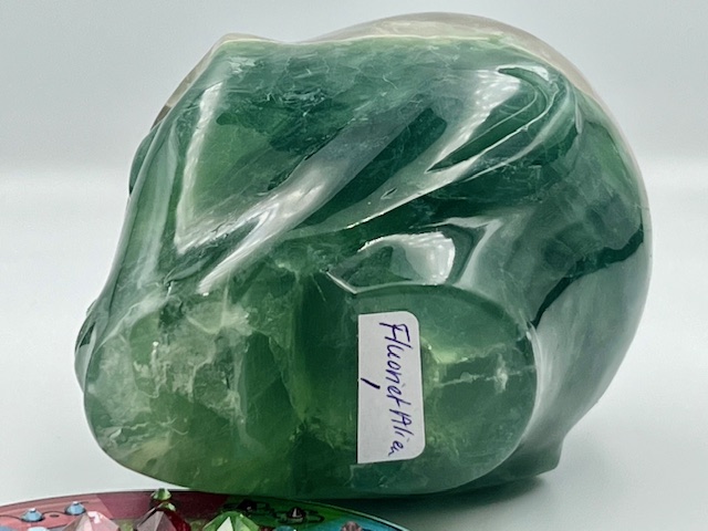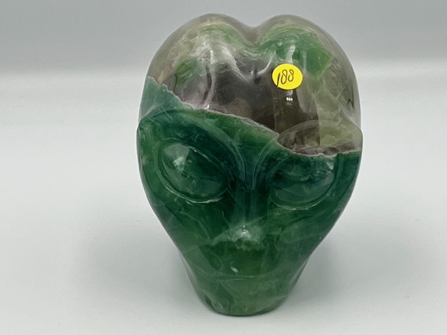 Deze groene Alien Schedel van fluoriet is als een Heilige Leraar die de LeMUriaanse Ziel ontvouwt en haar herinnert aan haar oorspronkelijke sterrenherkomst. Zij opent de weg naar de Violet Gouden LeMUria Tempels van Wijsheid en Holografisch Licht, waar oude wijsheid weer tot leven gewekt zal worden en geïntegreerd zullen worden in het dagelijkse leven van de Hoeder.