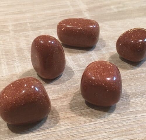 Goldflush/Goudsteen is synthetische glas met minuscule stukjes koper wat een mooi glinsterend effect heeft. De steen kan roodbruin, donkerblauw en groen van kleur zijn. Goudsteen werd voor het eerst gemaakt door alchemisten die goud probeerden te maken.