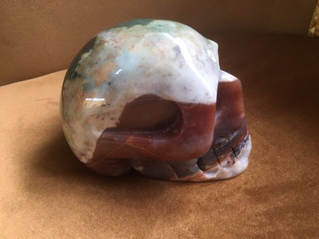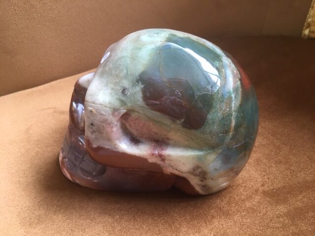 Heliotroop Jaspis / Bloedsteen Skull XL 1 – Gouden LeMUria ZonneZiel