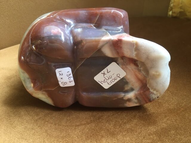 Een Ware Parel is deze LeMUria ZONNE SKULL, want Heliotroop is afgeleid van Helios dat ZON betekent. Zij zal de Gouden LeMUria Zon in je leven willen terugbrengen. Ze straalt en glanst als een Zonnetje. Dit komt door haar zonnige humeur en karakter, welke eigenschappen er voor zullen zorgen dat ze jou langzaam los zal maken van traumatische aangelegenheden, diep nog ergens in je verzegeld liggen of anderzijds naargeestig aanvoelende incidenten uit het verleden. Ze werkt het weg met haar stralende groen, brons kleurige Trillingen.