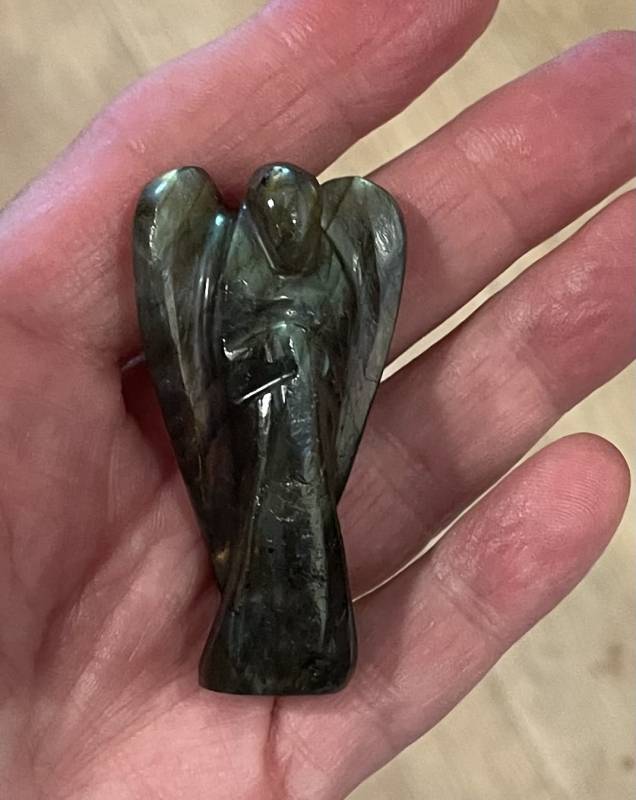 Deze unieke geholyficeerde Labradoriet Engel is absoluut een goede beschermende steun en toe verlaat, om bij je te dragen als je gehinderd wordt door spanningen, bijvoorbeeld van te voren én tijdens een belangrijk moment van welslagen, zoals een (rij)examen of sollicitatie gesprek, waarbij je dient te voldoen aan de eisen die op dat moment aan je gesteld gaan worden.