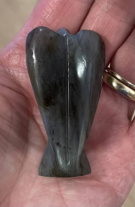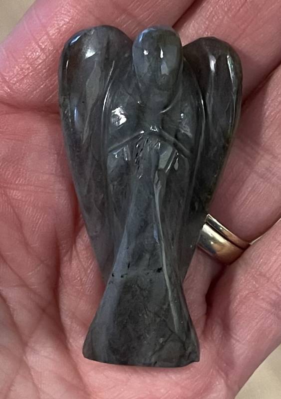 Deze unieke geholyficeerde Labradoriet Engel is absoluut een goede beschermende steun en toe verlaat, om bij je te dragen als je gehinderd wordt door spanningen, bijvoorbeeld van te voren én tijdens een belangrijk moment van welslagen, zoals een (rij)examen of sollicitatie gesprek, waarbij je dient te voldoen aan de eisen die op dat moment aan je gesteld gaan worden.