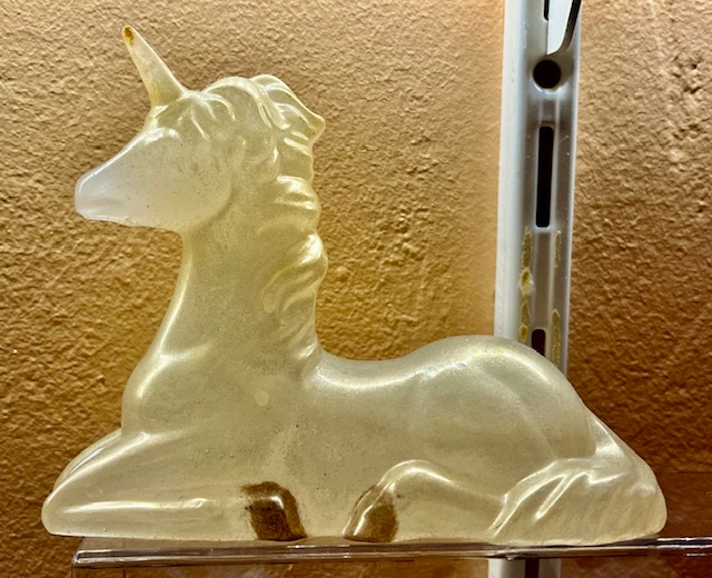Tevens een Ideale Eenhoorn om ook mee op reis te nemen vanwege haar kunsthars omhulling, want normaal gesproken zou Seleniet veel te broos en kwetsbaar zijn. Nu is het bestand om bijvoorbeeld even geplaatst te worden in de natuur, langs de waterkant of bij een Boom die als oude Oerpoort dient.