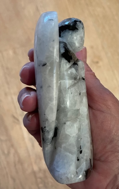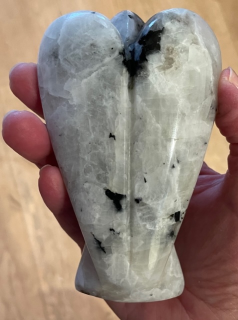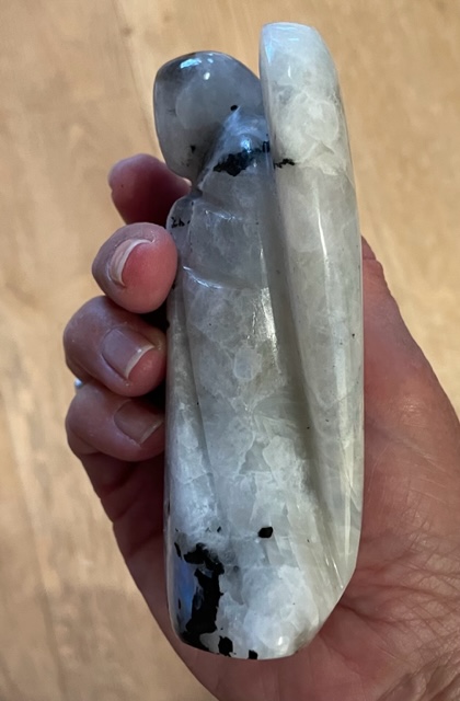 Deze schitterende LeMUria Regenboog Maansteen Engel Verlicht je Levenspad om je dromen en intenties tot uitdrukking te gaan brengen in de leven. Regenboog Maansteen bevat de Moederenergie van onze Moeder Maan en de Vrouwelijke Magische energie stroom van de Moeder LeMUria Natuur.