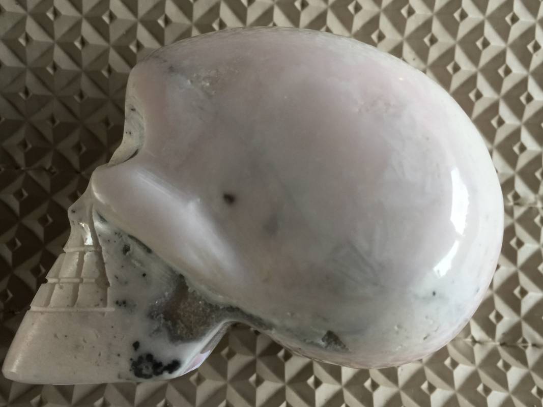 Zij is verbonden aan een Hathorgodin, waardoor haar tonen en frequenties als maar toe zullen blijven nemen naar gelang je met haar werkt of mediteert ten behoeve van het ontvangen ook van YIN energie ten behoeve van Moeder Aarde en alle Oud LeMUrianen, waarvan jij er een bent, als je je aangetrokken voelt tot deze wonderschone zachte skull.