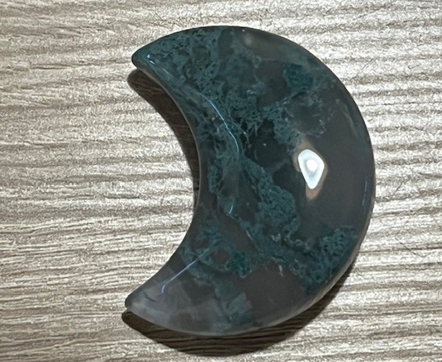 Mosagaat is een aanmoedigende en zeer aardende steen. Deze geïnitieerde halve Maan brengt ontspanning en balans, waardoor ze mede een echte stabiliteitsbrenger is geworden.