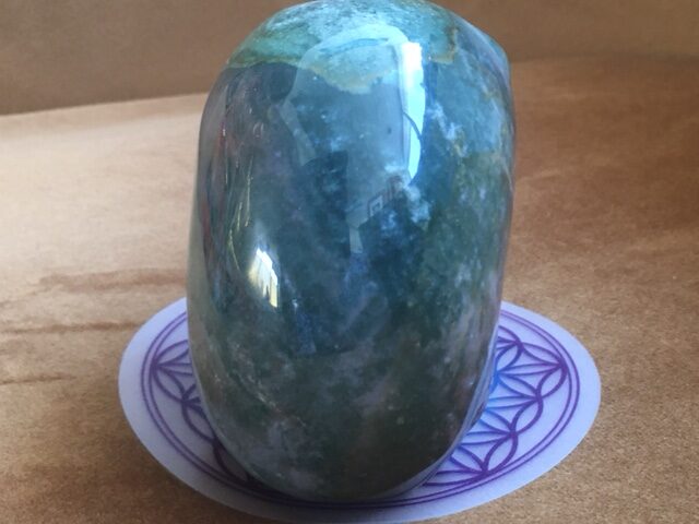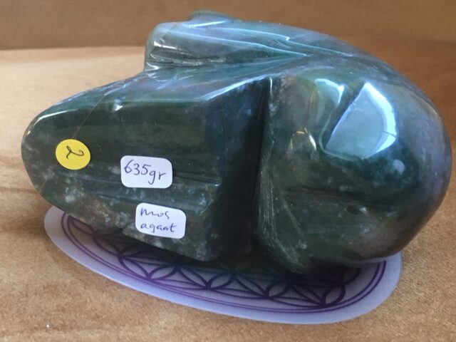 Haar onderstel is diep mosgroen aan de onderkant, lijkt veel op donker groene jade, zodat je ziet dat zij over uit gebalanceerde krachten beschikt om je stress bestendiger te maken. Oppervlakkigheden en vooroordelen, maar ook alles wat af kan leiden werkt zij met zachte hand uit je systeem. Kortom een magnifieke trouwe LeMUriaanse Natuurgodin!