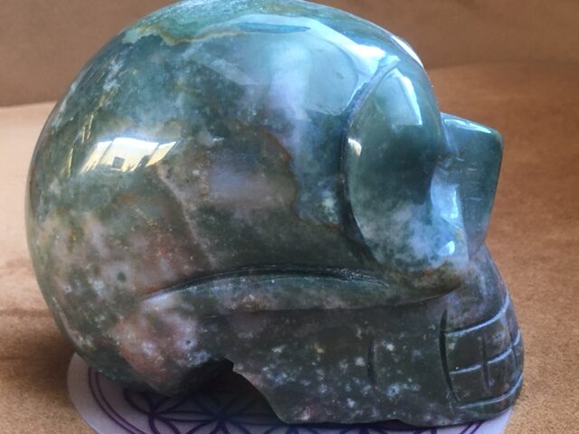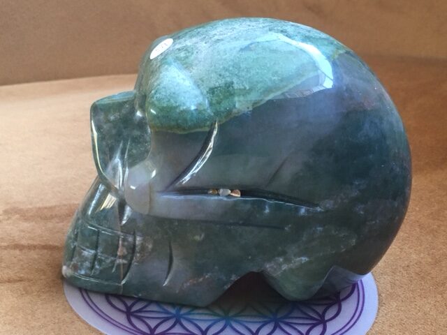 Biedt stabiliteit en rust op alle niveaus door haar aardende en stabiliserende inwerking. Heel goede helende skull ter ondersteuning van herstel na ziekte, of om tot rust te komen na emotionele onrust.