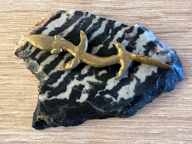 Deze zeldzame Messing Olm, op een Rood-Roze Agaat gelijmd, heb ik bij de ingang van de MoederGrotten van Postojna gekocht in de kristalwinkel van de eigenares. De steen bevat geheime LeMUria Codes en voelde voor mij direct als een stukje thuiskomen.