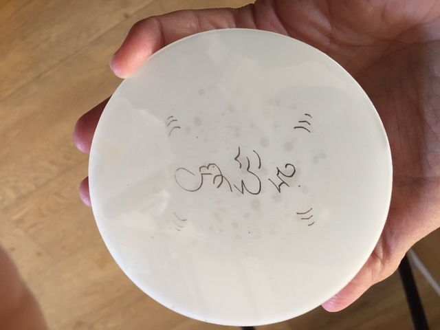Doorsnede 10 cm – dikte 1.8 cm – gewicht rond 240 gram