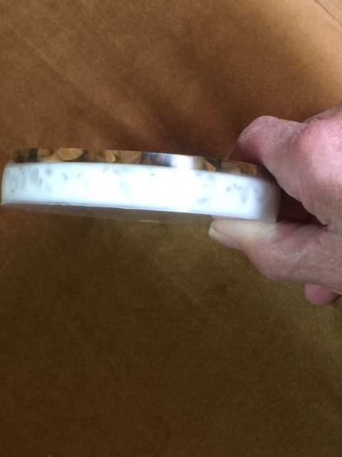 Doorsnede 10 cm – dikte 1.8 cm – gewicht ruim 250 gram