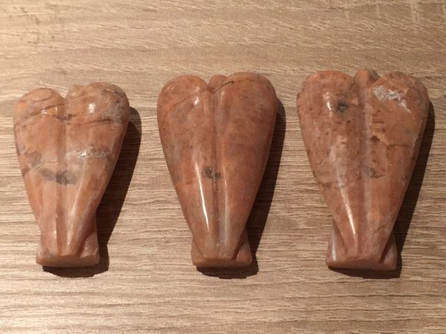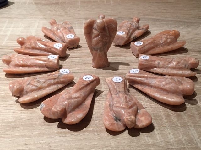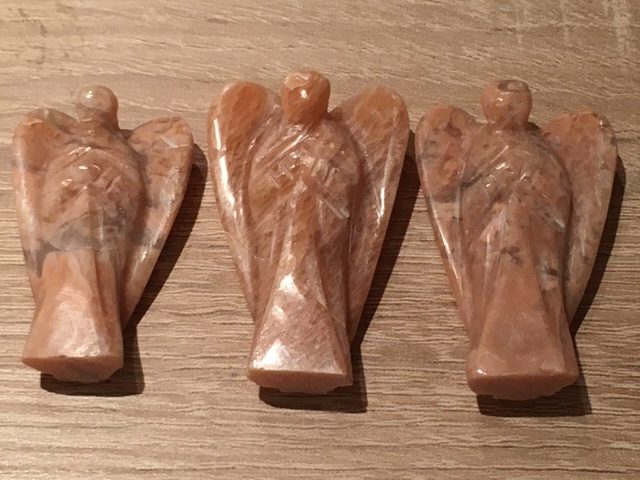 De kleur van deze hemelse Venus Engeltjes liggen tussen zalmroze en rood-oranje Kwarts-Maansteen.Vaak treft men er zwarte of witte insluitsels in aan. RoSophia betekent “Roos van Sophia”. Sophia is een wijze Moedergodin, ook wel de godin van de WIJSHEID genoemd. Zij staat voor de Goddelijke Vrouwelijke en is een super zachtaardige en lankmoedige godin.