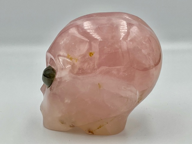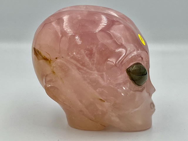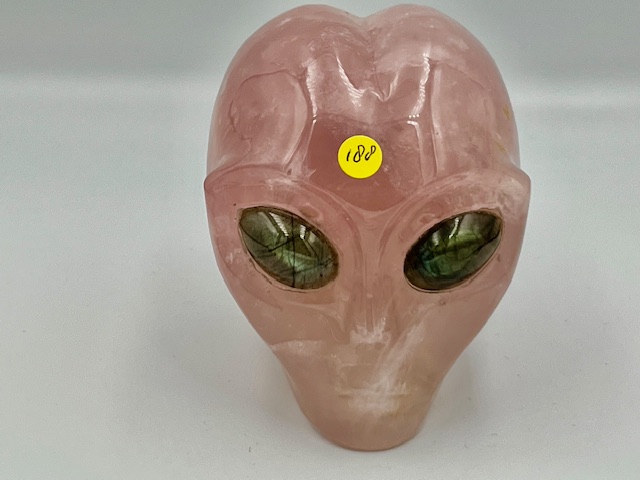 Rozenkwarts Alien Skull met Labradoriet ogen 20: 8.5×6.5×7.5 cm – 553 gr – VENUS afgezant