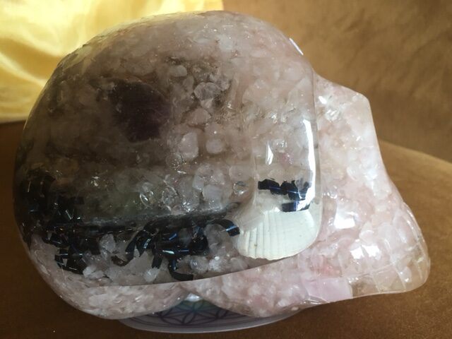 Wat kan een Kristallen Orgonite LeMUria Schedel voor jou betekenen ?