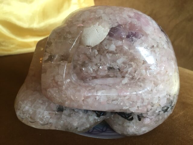 De Mal van deze Skull werd gevormd door mijn LeMUria Hathor Rozenkwarts Skull ‘Venus – Peace’.