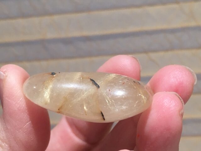 Rutielkwarts naalden worden gevormd in Bergkristal (soms Rookkwarts of zelfs Amethist). Deze goudkleurige naalden zijn van titaan. Een heel bijzondere en mooie steen om te zien! Ongelooflijk dat dit puur natuur is.