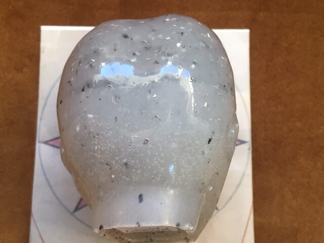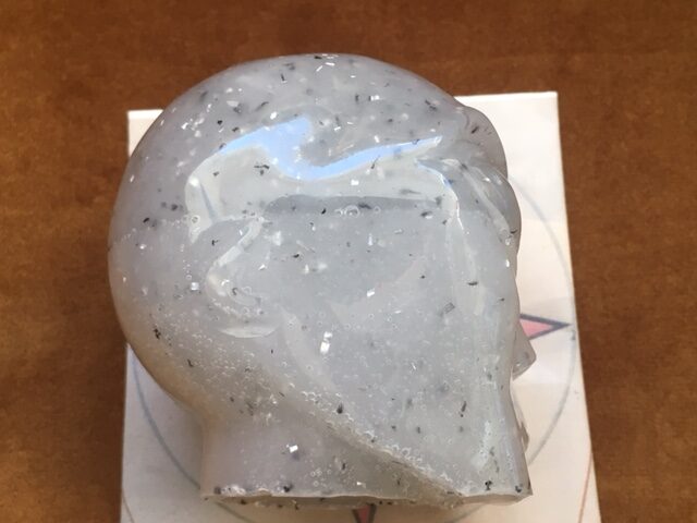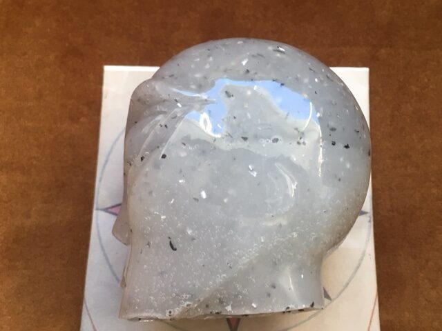 Deze Orgonite Seleniet skull is een Magische, reinigende en beschermende skull. Zij zorgt voor harmonie, balanceert en trekt voorspoed, geluk en welvaart aan. Zij bevordert zelfverwezenlijking en zelfredzaamheid en helpt je om negatieve energieën uit je leefomgeving te verwijderen en weerhoud je om fysieke kwetsuren op te lopen. Zij werkt in op jouw Gouden LeMUria hart chakra, beschermt, reinigt en bevordert de liefde voor je Innerlijke Kind en Ware OverZiel, verzorgt en vergroot je tolerantie niveau.