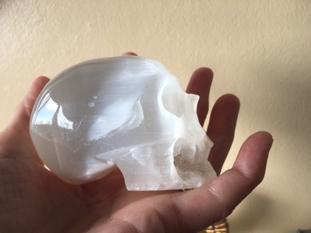 Seleniet wit Alien Skull 31 – Met Wit Zilver-Gouden Moeder Maria frequentie