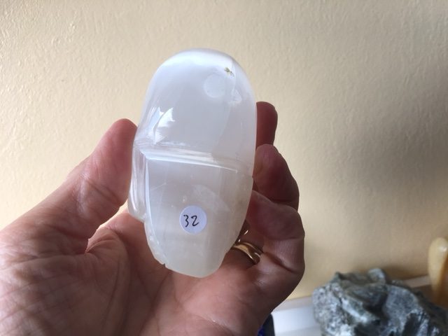 Seleniet wit Alien Skull 32 – Met Wit Zilver-Gouden Moeder Maria frequentie