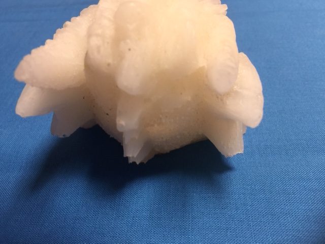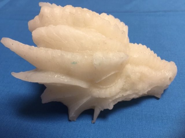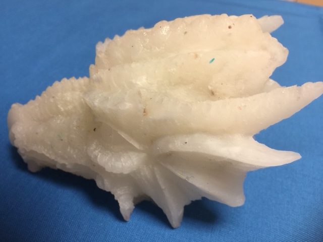 Deze draak is dus niet van Orgoniet, want er bevinden zich geen metaaldeeltjes of erts-mineralen binnenin het seleniet.