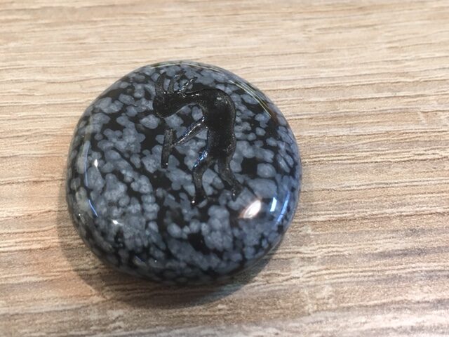 Sneeuwvlok Obsidiaan – Talismansteen – Kokopelli = God van Vreugde & Vruchtbaarheid