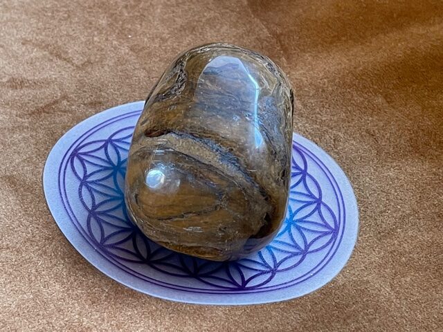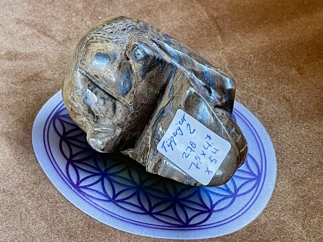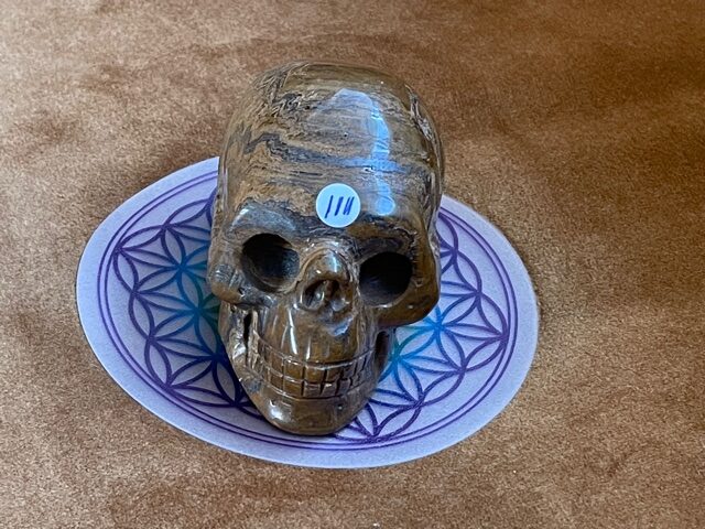 Het is een échte LeMUria Tijger van een skull, welke op uitmuntende wijze kracht, moed, zelfvertrouwen en uithoudingsvermogen geeft. Door de combi van Tijgeroog, Jaspis en Hematiet kwarts versterkt ze de Zonnekracht en Vitaliteit van een mens. Als een ware LeMUriaan kom je tot rust en word je in het centrum van je lichaam getrokken. Een continue straling van levensenergie door je Prana Kanaal bevordert ook de nachtrust en kan als een geleidelijke katalysator helend en stimulerend inwerken op je immuunsysteem. Met name Hematiet in deze krachtige Tijgerijzer Dame zal je gronden, waardoor je met meer zelfvertrouwen de wereld tegemoet durft te treden.