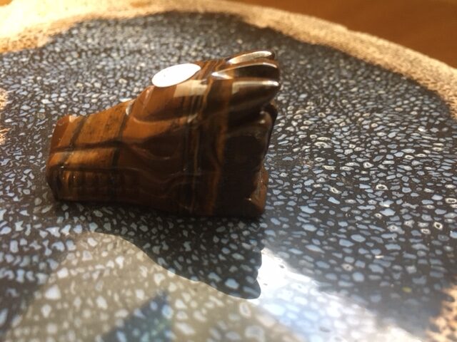 Deze goudgele mini Tijgeroog Drakin zal een goede kalmerende steun en toeverlaat zijn om bij je te dragen tijdens een Examen.