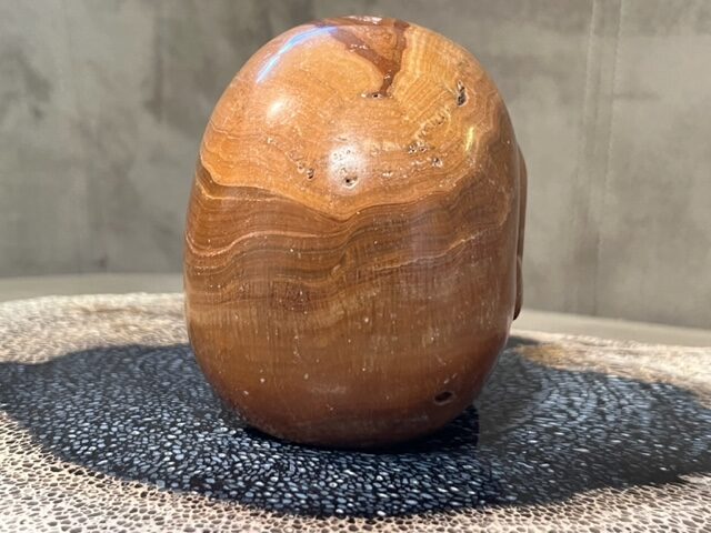 Deze Versteend Hout Schedel is dus werkelijk Oeroud Uniek in haar soort. Zij bevat een groot deel van de bestaansgeschiedenis van Moeder Aarde in haar genenbank!