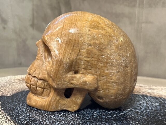 Fysiek heeft deze Versteend Hout Skull een positieve werking op skelet & bottenstructuur (o.a. bij osteoporose), de rug, ADHD en hyperactiviteit.