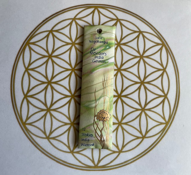 Speciaal voor mijn werk heb ik Moeder’s Geuren Wierook uit India gekozen, omdat ze van een uitstekende kwaliteit zijn. Het stokje wordt namelijk altijd van bamboesplinters gemaakt en met de hand in de hars gerold, omdat dit niets afdoet aan de originele Moeder Kruidengeur, doordat er geen giftige stoffen vrij zullen komen en mooi langzaam opbrandt.