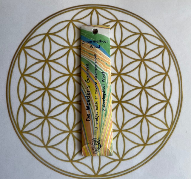 Speciaal voor mijn werk heb ik Moeder’s Geuren Wierook uit India gekozen, omdat ze van een uitstekende kwaliteit zijn. Het stokje wordt namelijk altijd van bamboesplinters gemaakt en met de hand in de hars gerold, omdat dit niets afdoet aan de originele Moeder Kruidengeur, doordat er geen giftige stoffen vrij zullen komen en mooi langzaam opbrandt.