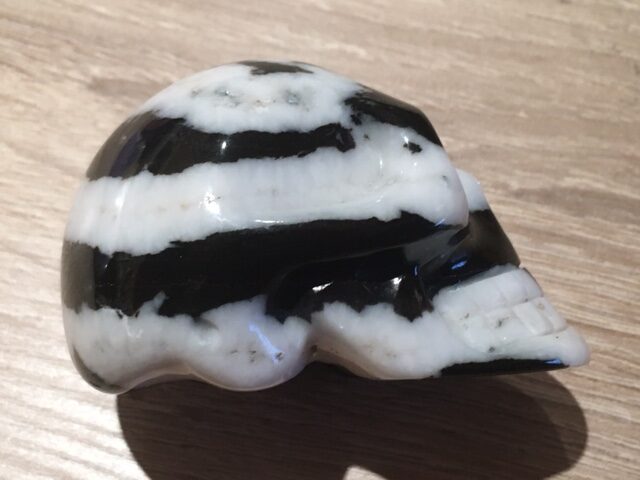 Zebra Jaspis is eigenlijk onmisbaar voor iedereen hier op aarde. Zij verenigt zoveel positieve eigenschappen die op Moeder Aarde ontegenzeggelijk te kort schiet onder de mensheid! Eigenlijk zou ik iedereen aan willen raden om daarom ook een of meerdere kiezelstenen in huis te halen of bij zich te dragen, want zij dragen op meervoudige wijze ook de kwaliteiten in zich mee van deze schitterende Zebra gestreepte wit zwarte Yin Yang gebalanceerde LeMUria Skull.