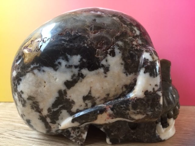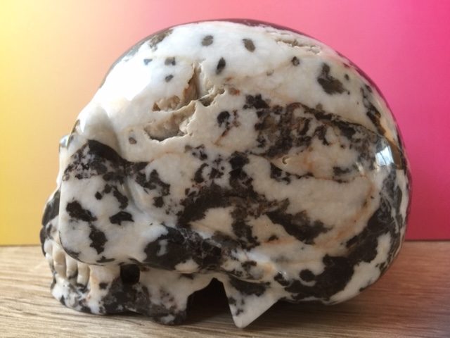 Zebra Jaspis is eigenlijk onmisbaar voor iedereen hier op aarde. Zij verenigt zoveel positieve eigenschappen die op Moeder Aarde ontegenzeggelijk te kort schiet onder de mensheid! Eigenlijk zou ik iedereen aan willen raden om daarom ook een of meerdere kiezelstenen in huis te halen of bij zich te dragen, want zij dragen op meervoudige wijze ook de kwaliteiten in zich mee van deze schitterende Zebra gestreepte wit zwarte Yin Yang gebalanceerde LeMUria Skull.