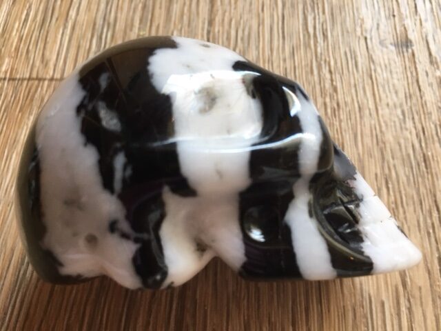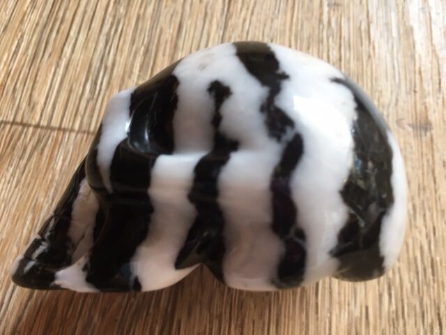 Zebra Jaspis is eigenlijk onmisbaar voor iedereen hier op aarde. Zij verenigt zoveel positieve eigenschappen die op Moeder Aarde ontegenzeggelijk te kort schiet onder de mensheid! Eigenlijk zou ik iedereen aan willen raden om daarom ook een of meerdere kiezelstenen in huis te halen of bij zich te dragen, want zij dragen op meervoudige wijze ook de kwaliteiten in zich mee van deze schitterende Zebra gestreepte wit zwarte Yin Yang gebalanceerde LeMUria Skull.